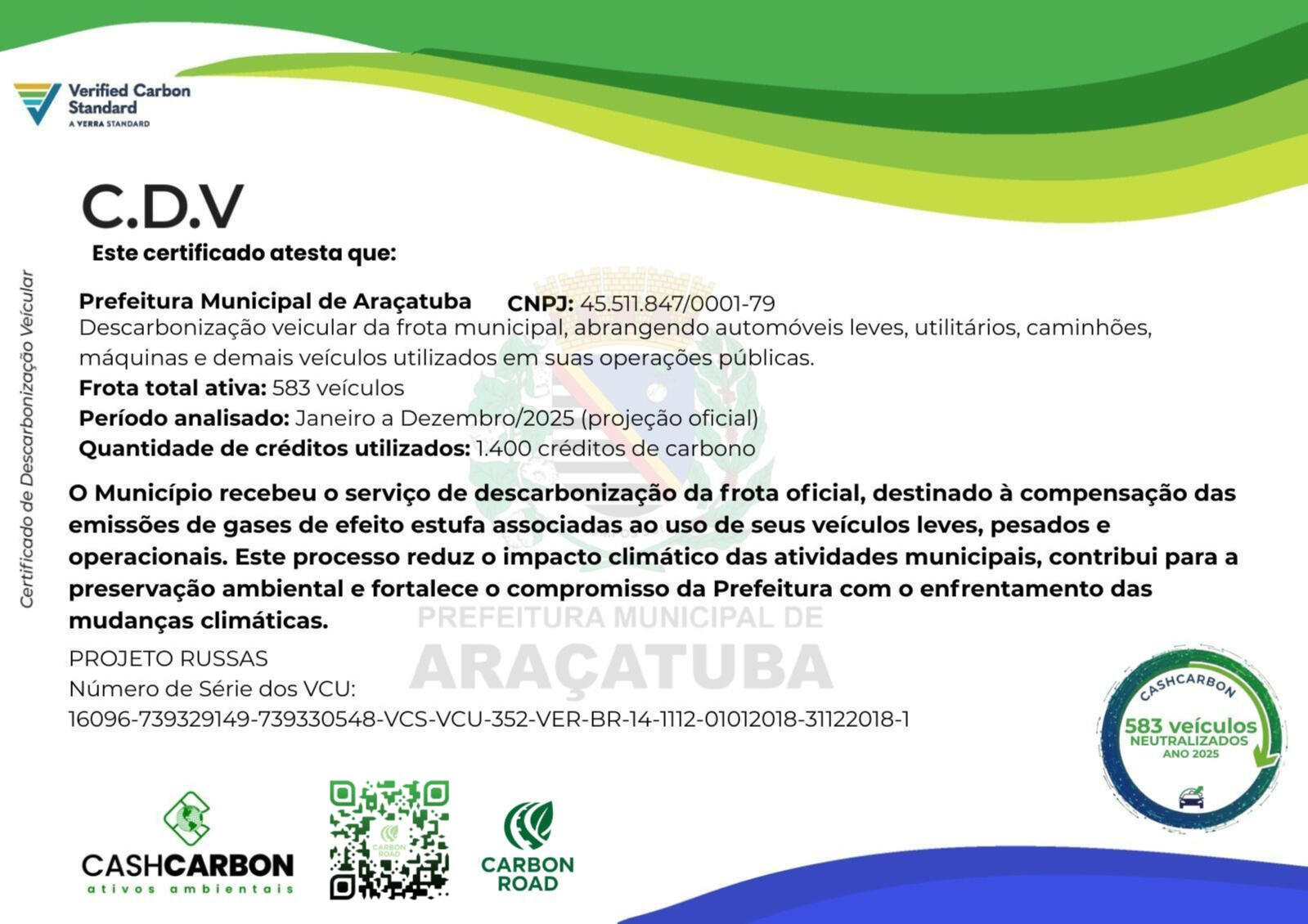 O Certificado de Descarbonização Veicular comprova que as emissões de uso do seu carro foram compensadas por créditos de carbono aposentados para esse fim. Você recebe um link/QR de verificação pública e pode exibir sua comprovação quando quiser.